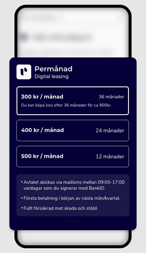 Med digital leasing erbjuder du dina kunder ekonomisk flexibilitet. Detta skapar ett smidigt köpflöde, ökar kundtillfredsställelsen och uppmuntrar till återkommande affärer. Du förbättrar dina marginaler utan risk och tidskrävande pappersarbete.